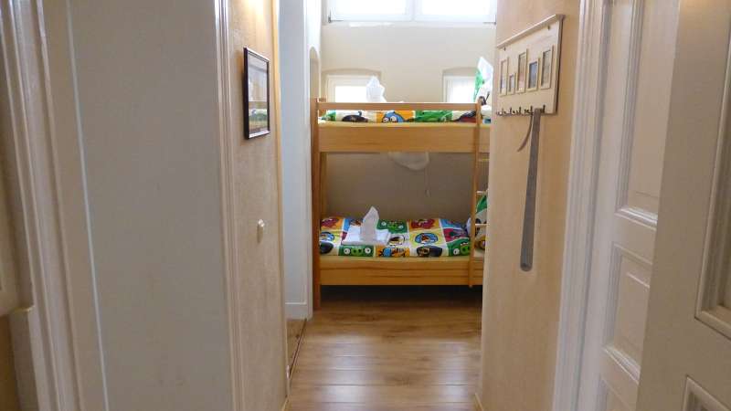 Unsere Wohnung Ahlbeck befindet sich im I. OG und bietet ein separates Schlaf- und Wohnzimmer (inkl. Schlafcouch), ein Etagenbett für 2 Kinder im Flur, ein Badezimmer mit Dusche und WC, eine separate Küche, Kabel-TV, Radio, CD- und DVD Player.